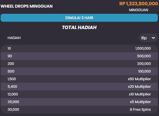 Tabel Hadiah Wheel Drops Mingguan