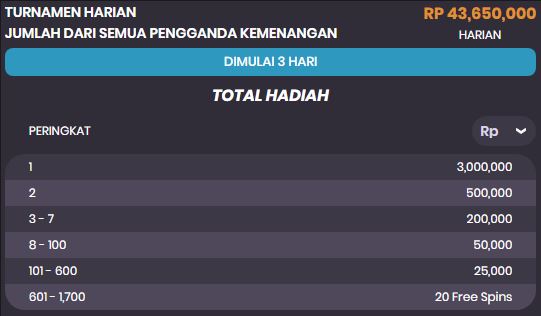 Pemenang Turnamen ditentukan berdasarkan Skor pada Papan Peringkat.
