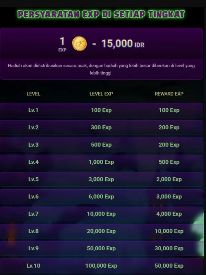 3. Selama masa promosi, pemain akan mengumpulkan point EXP yang diubah dari total jumlah taruhan untuk membuka level dan memenangkan hadiah. Level yang lebih tinggi berarti hadiah yang lebih baik!