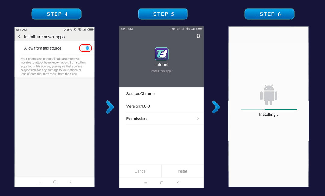 Berikut ini adalah cara download aplikasi android TOTOBET pada handphone android anda :